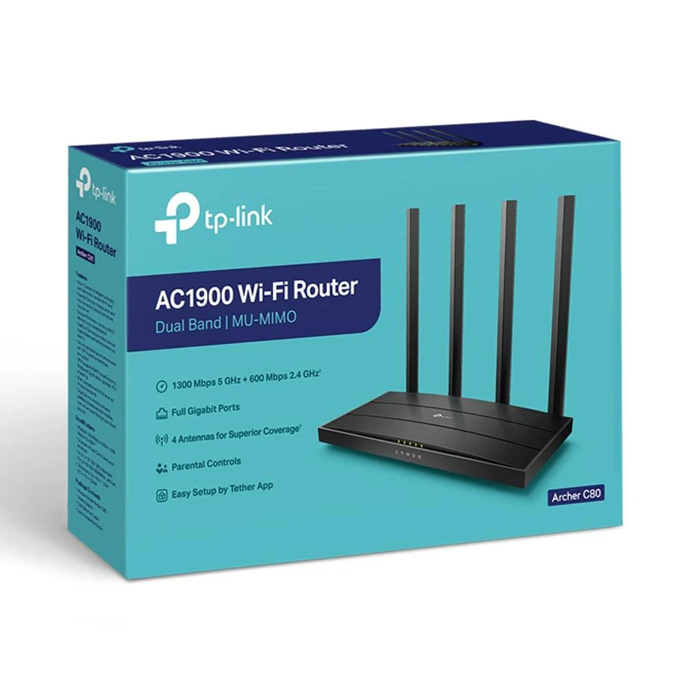 اكسس بوينت تي بي لينك 4 منفذ 4 انتينا Archer C80 AC1900 Wireless MU-MIMO Gigabit